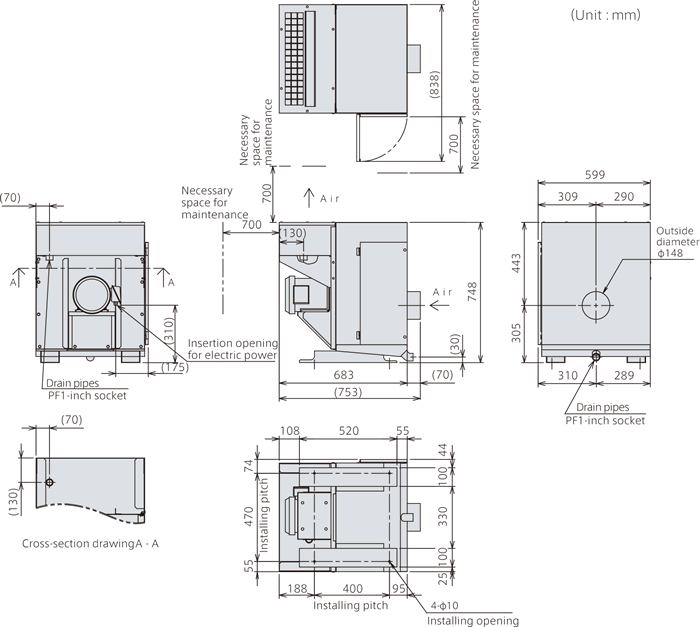 | Coating color | Munsell N7.3 / Munsell 5PB2/2(Fan motor casing) |